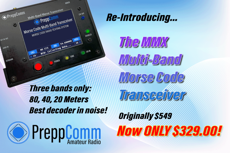 Following our blockbuster price reduction of the DMX-40 from $399 to $229, we are now repeating that effort by reducing the MMX 3-band Morse Transceiver price 60% from $545 to $329!