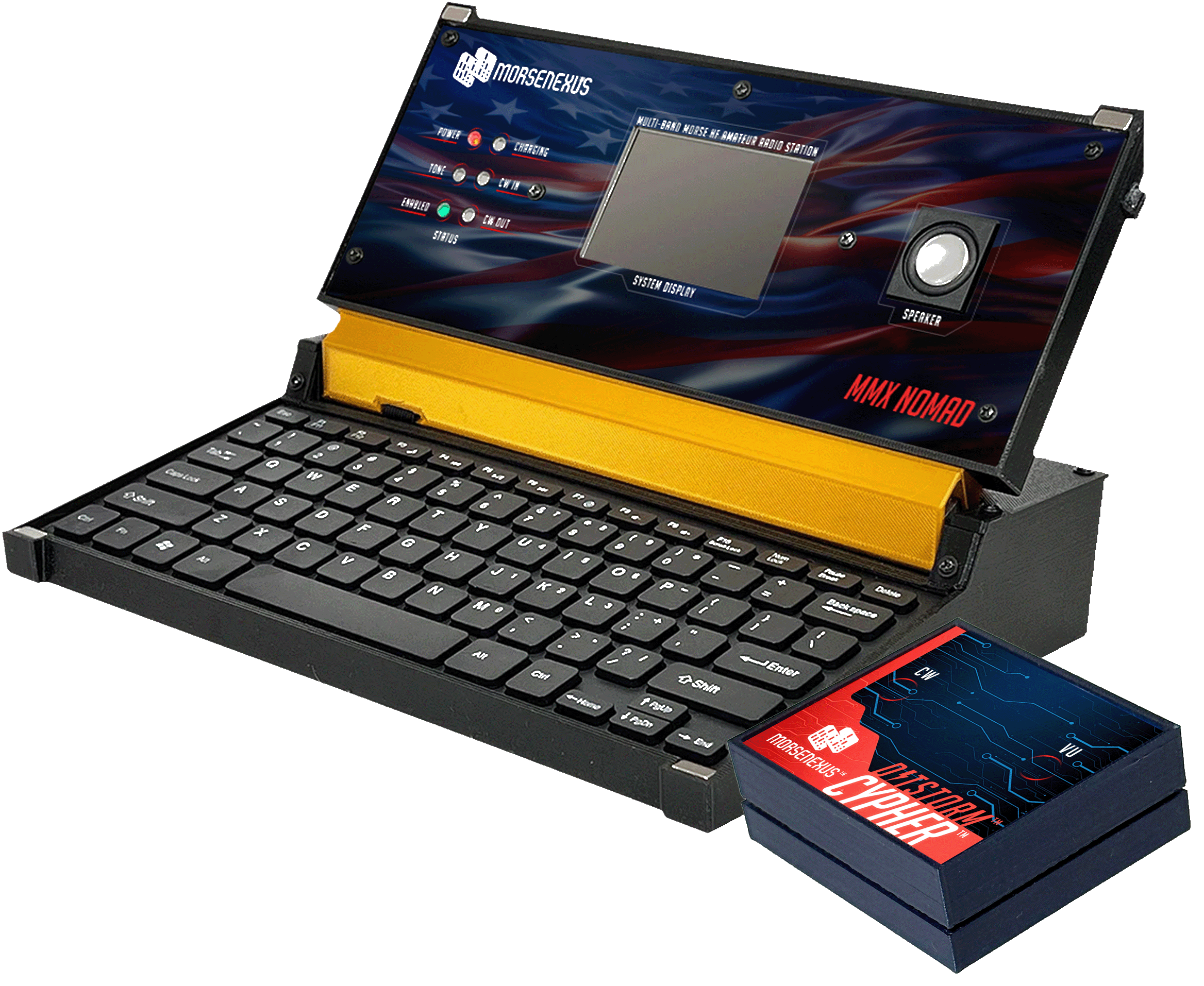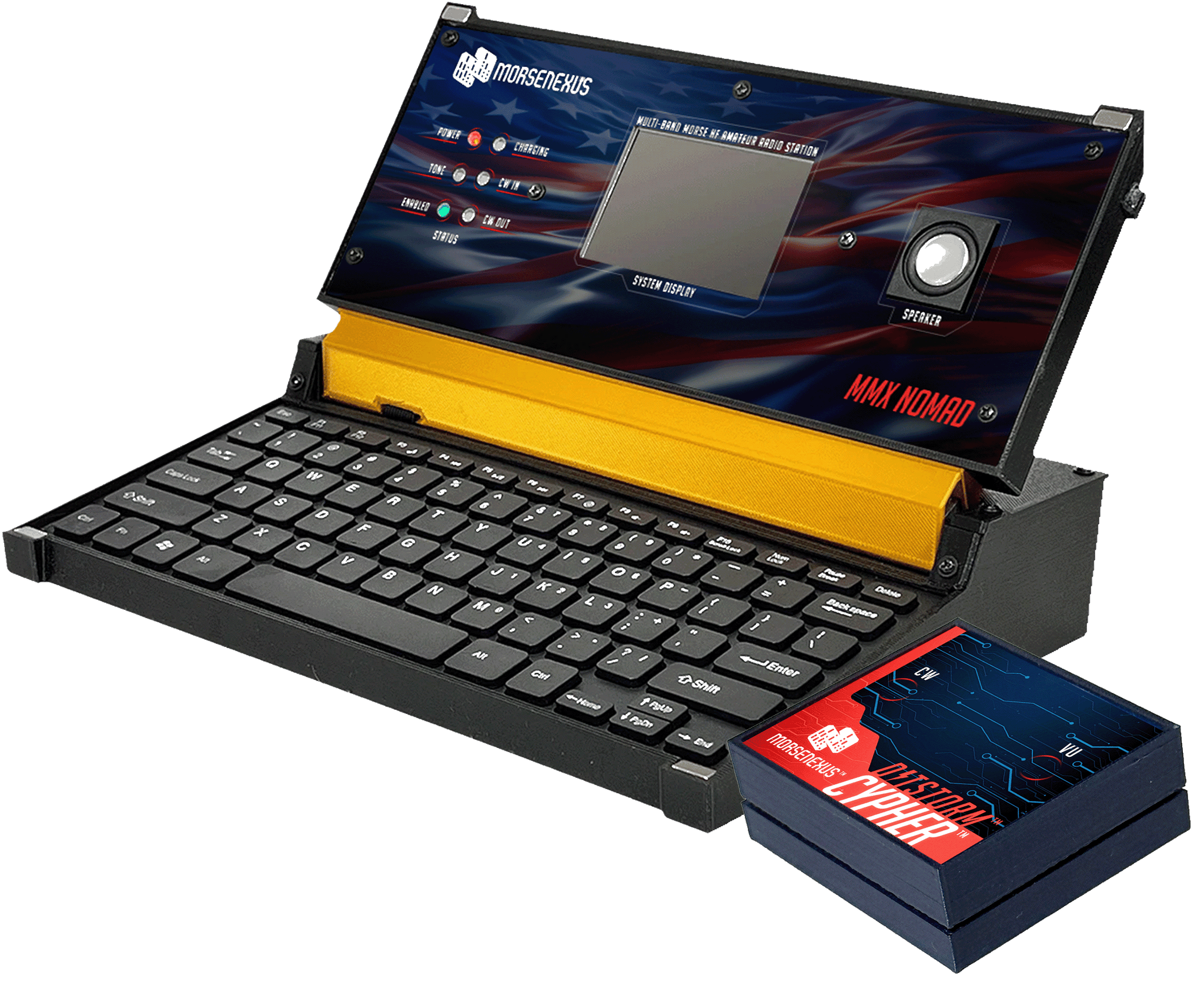 Not only do you get the most forward-looking packaging of a complete HF radio station in the Nomad, but the precedent-shattering Morse code mastery of the DitStorm Cypher™ - a combination that gives you ease of use by eliminating multiple devices such as keyboard, battery, SWR meter, and external speaker into a single unit, plus the ease of use of the functional brilliance of the Cypher™ and the amazing DitStorm™ decoder!
